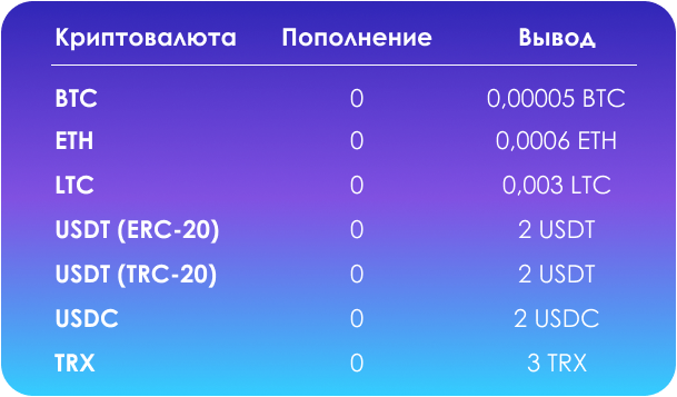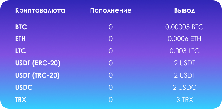 Ознакомьтесь с комиссиями по различным операциям, чтобы пользоваться приложением с удобством.