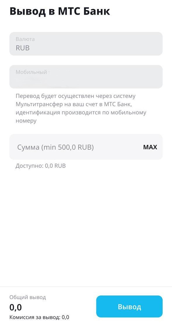 Вывод на счет МТСБ
