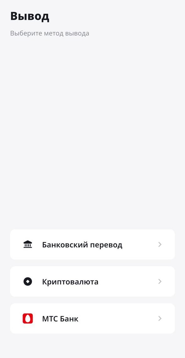 Также на главной странице выбираете Вывод, затем нажимаете МТС Банк
