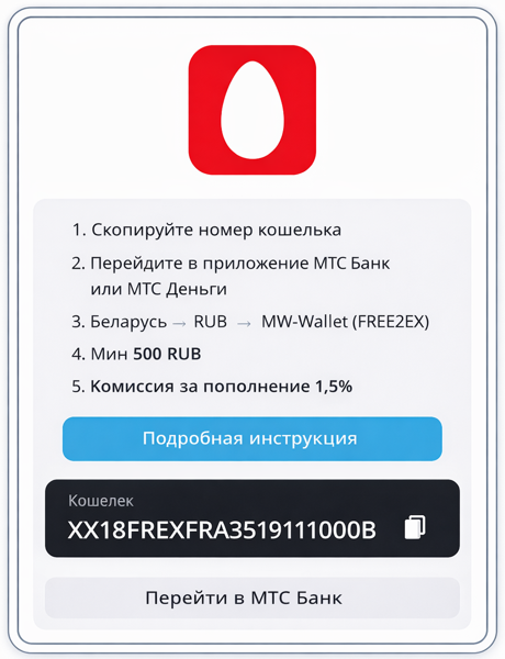Пополнение фиатом с карты МТСБ